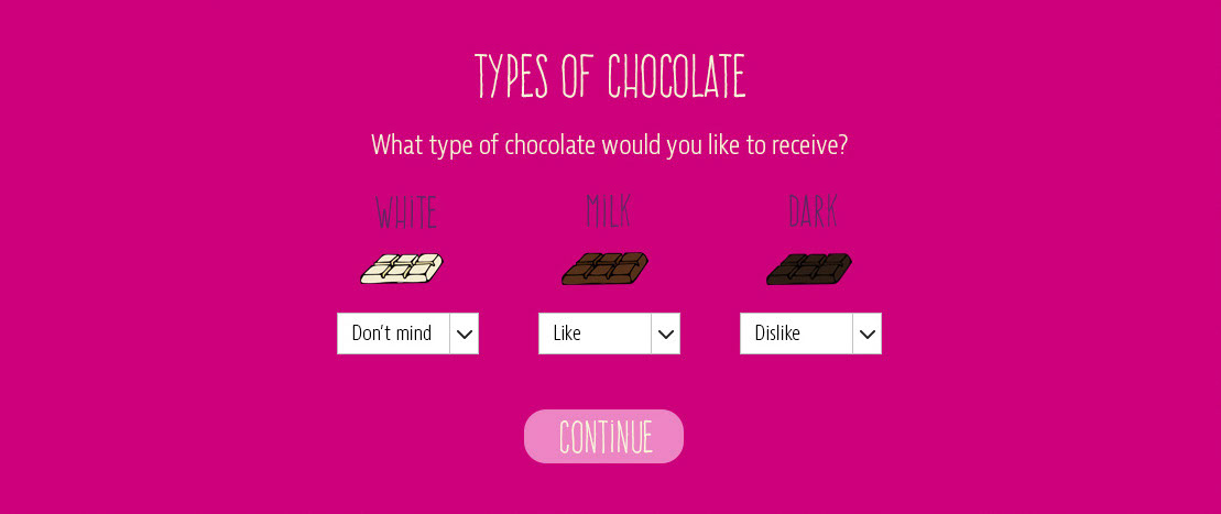 The following are some of the steps in the processĀ of signing up for a Chocolate Treat Club. I have started with the whole page but thereafter am just showing the steps to avoid repetition.